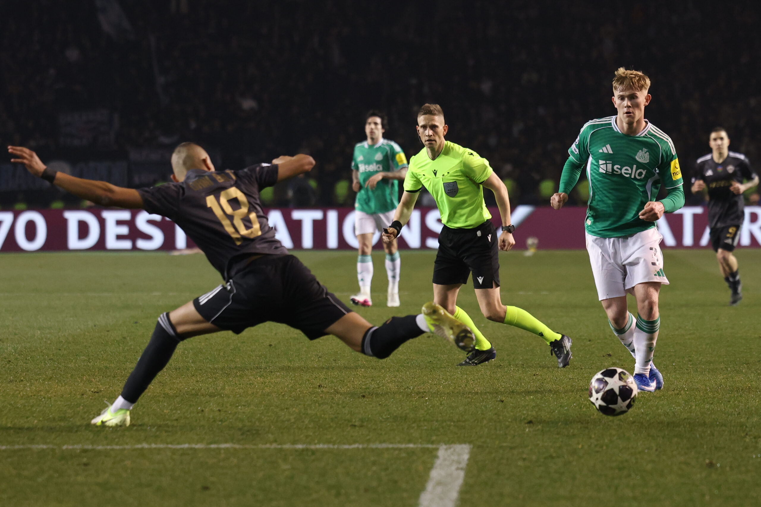 Фудбалери Њукасла убедљиво су савладали Карабаг у Азербејџану резултатом 6:1 у првој утакмици плеј-офа за пласман у осмину финала Лиге шампиона.